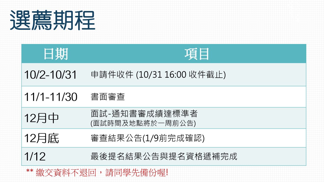 3. 書審通過之申請者,面試時間將另行通知,請務必確認所提供之信箱資訊正確。